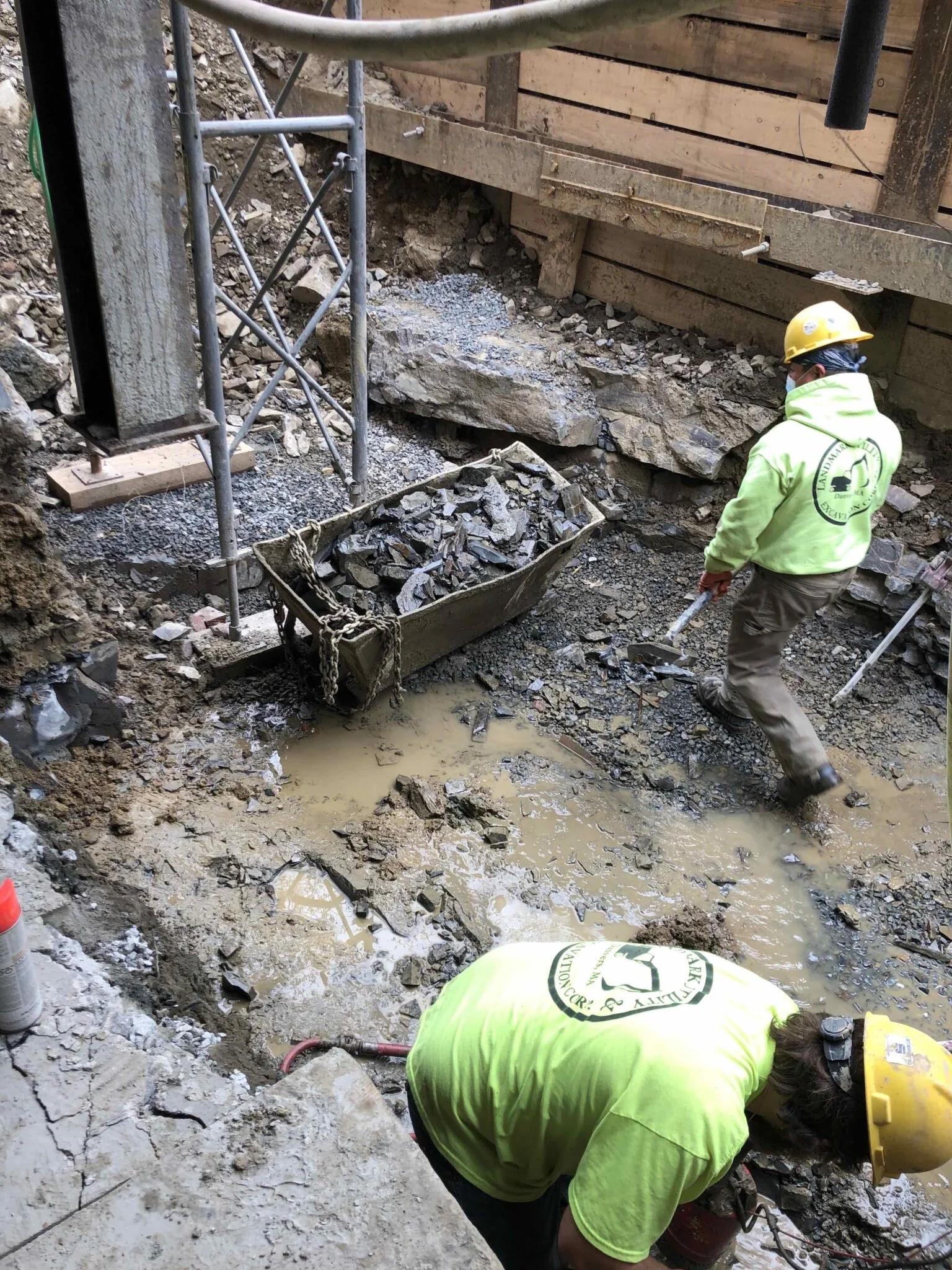 This week our construction team was busy finishing the ledge removal to make way for the elevator. The team also had the masons out on site to create a sample brickwork for comparison. Can you spot the subtle design detail in the brickwork?